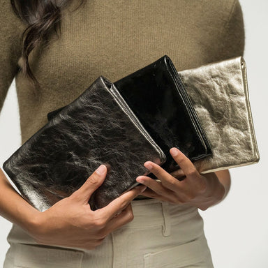 View full detailsThis foldover clutch is a stylish, easy, day-to-night clutch. Available in two sizes to suit your specific needs, each with multiple pockets, secur...