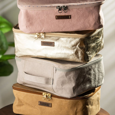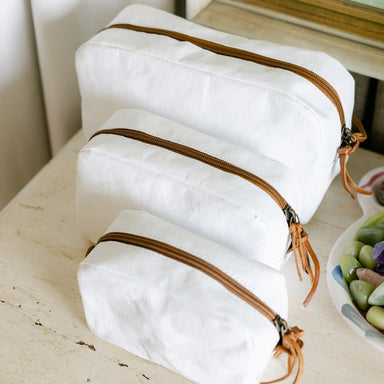 A simple way to organize all of your toiletries and essentials for your travels in our washable, lightweight, eco-friendly make-up bags.